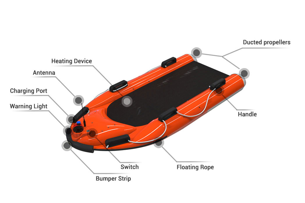 One of the key features of the Water Rescue Stretcher Bed is its remote controller, which allows for precise and efficient rescue operations. The device can be directed by the controller to approach and rescue victims in water, making it a valuable asset for rescue teams responding to emergency situations.