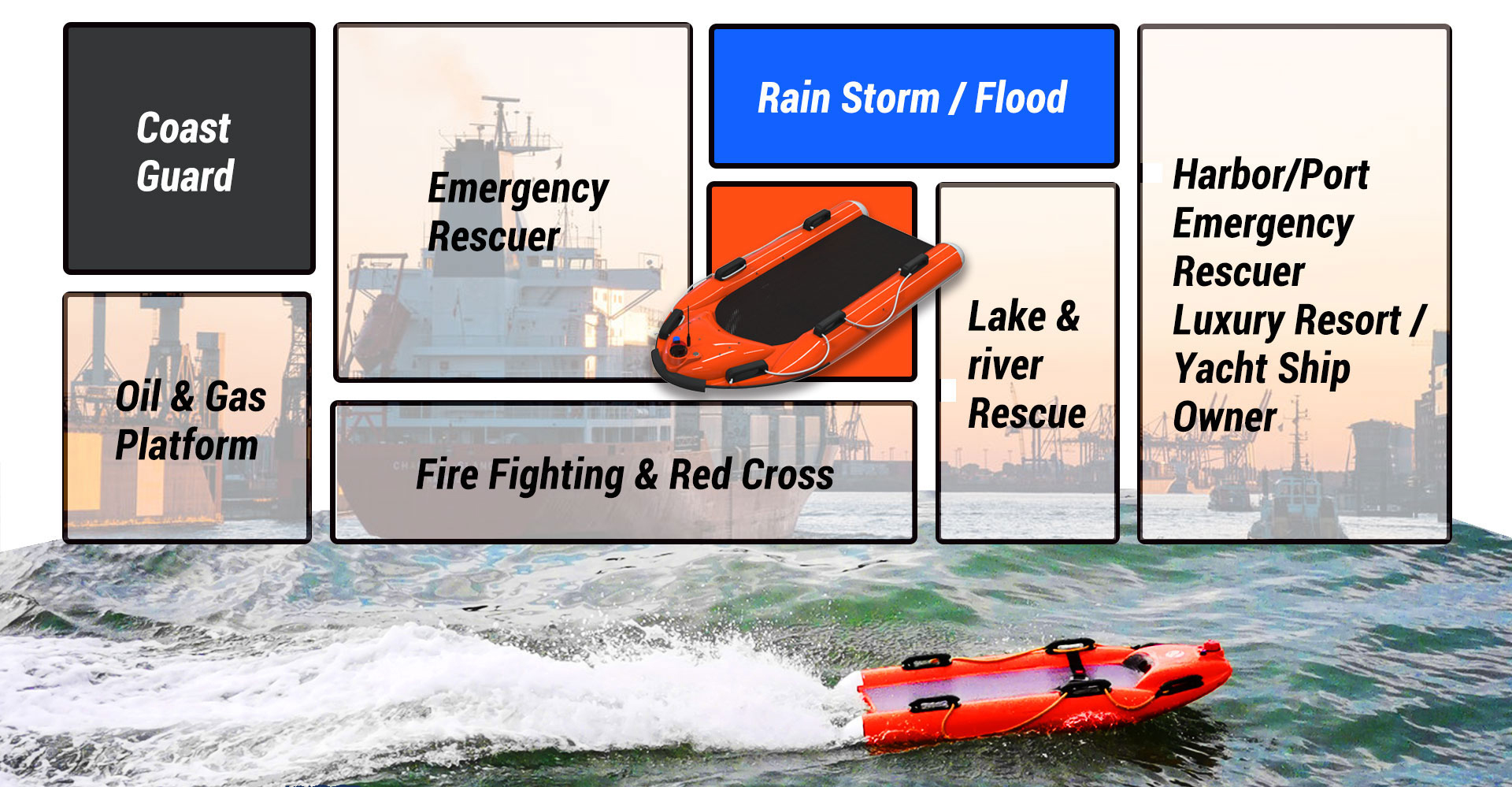 Operator can quickly and easily steer the device to victim on shore or on vessel. After victim got picked up by the device, the device will bring the victim to a safe place. To victims who are unable to move at all, the device can drive backward to pick them up.